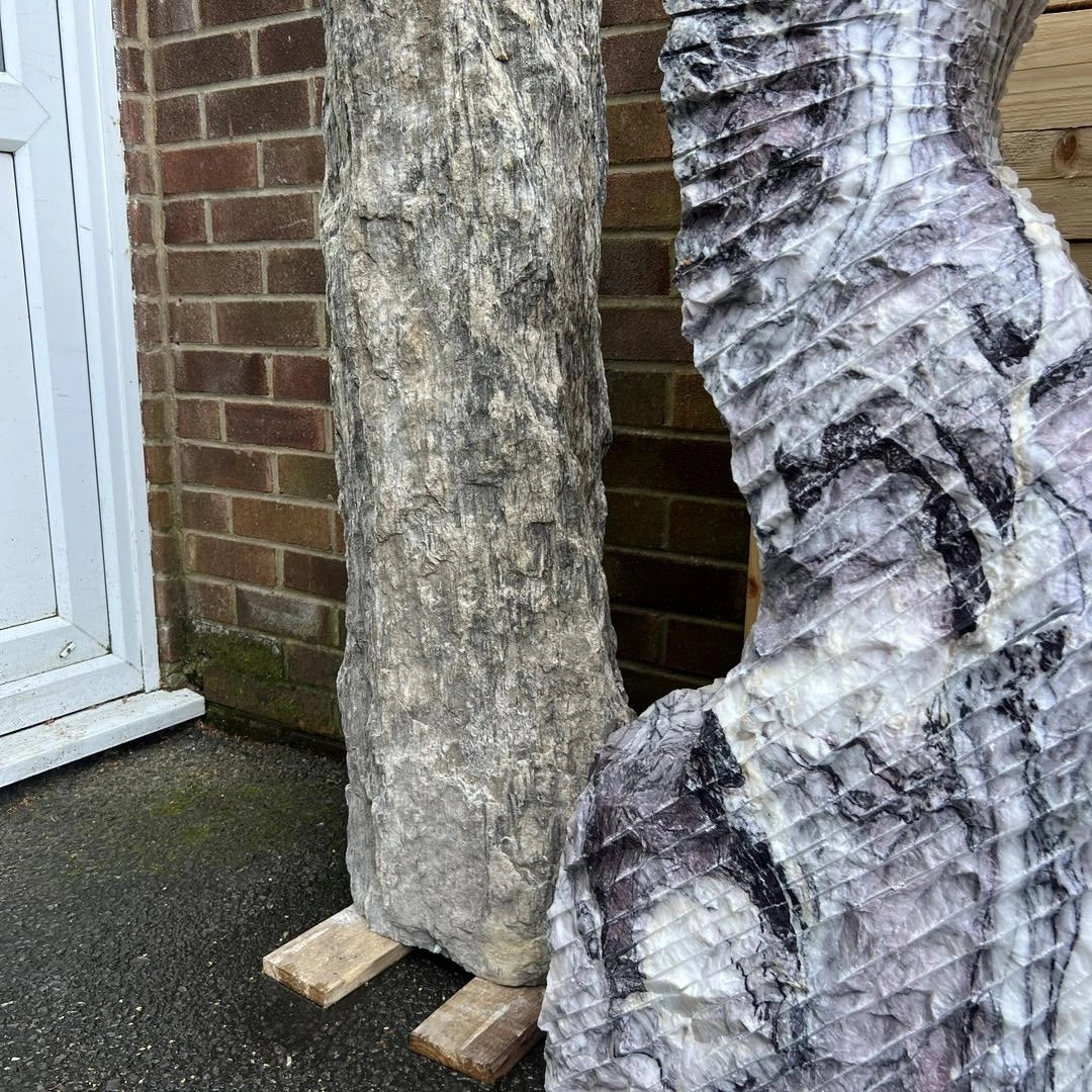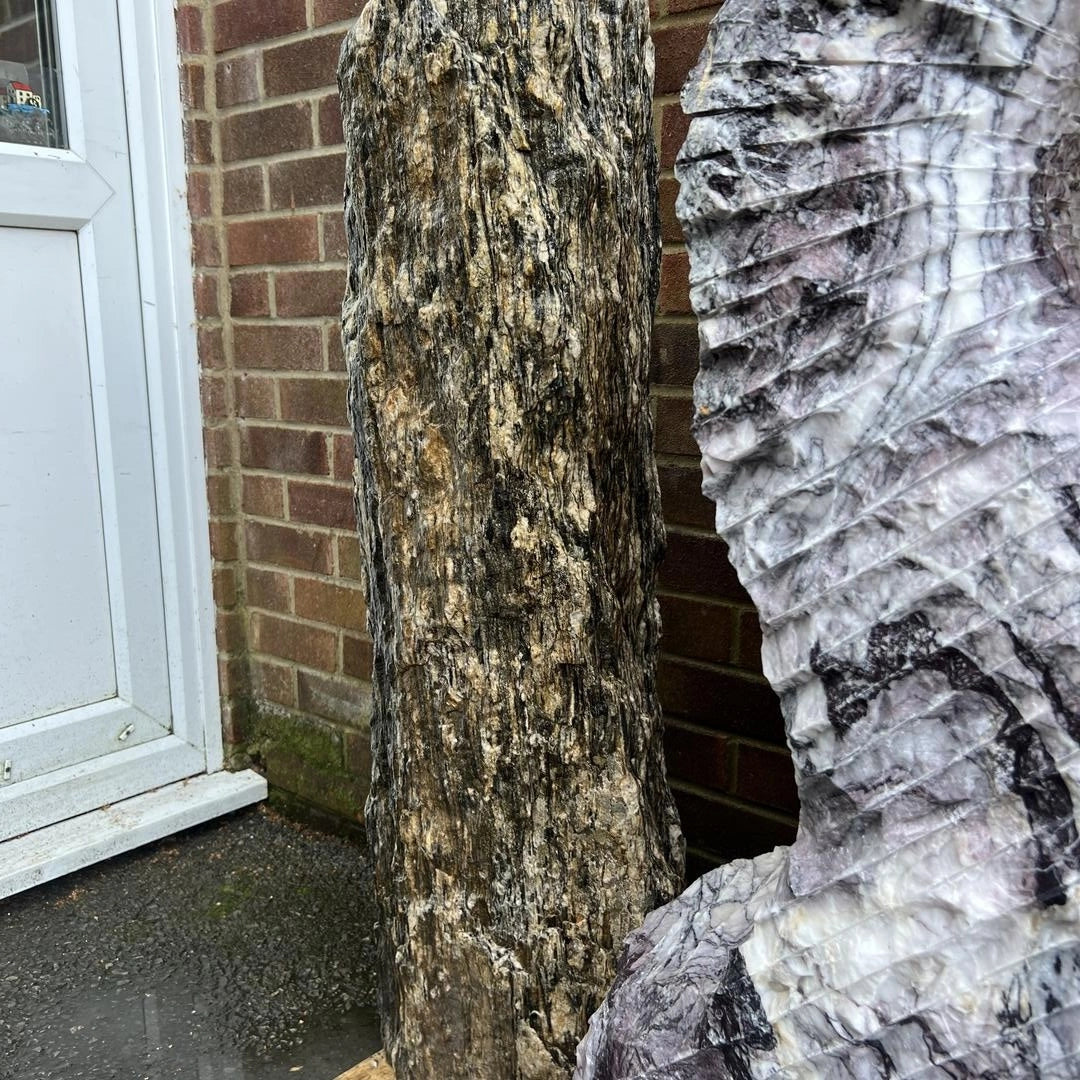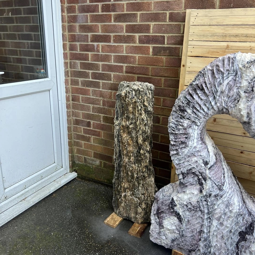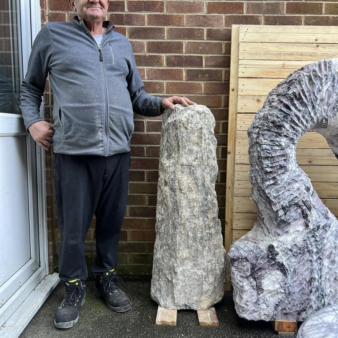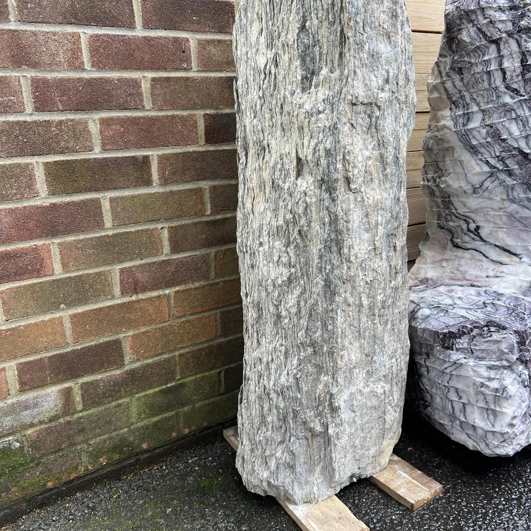 Introducing the Monolith MON-035, a stunning natural stone monolith that stands 106 cm tall and 40 cm wide, weighing 174 kg.